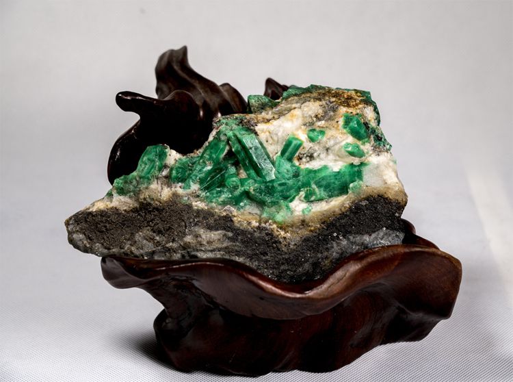 截今为止,祖母绿矿未专门开采过。作为锡、钨、锌的附产矿石被发现后,早年很少被利用。后随着人们生活水平的提高及饰品文化知识的普及,深藏地下千万年的祖母绿得以实现其自身价值,逐渐被加工成戒指、手镯、吊坠等饰品出售。产品面市后就受到饰品爱好者亲睐和追捧,近几年价格一路飚升,有的收藏标本被炒至几十万、几百万甚至上千万元。